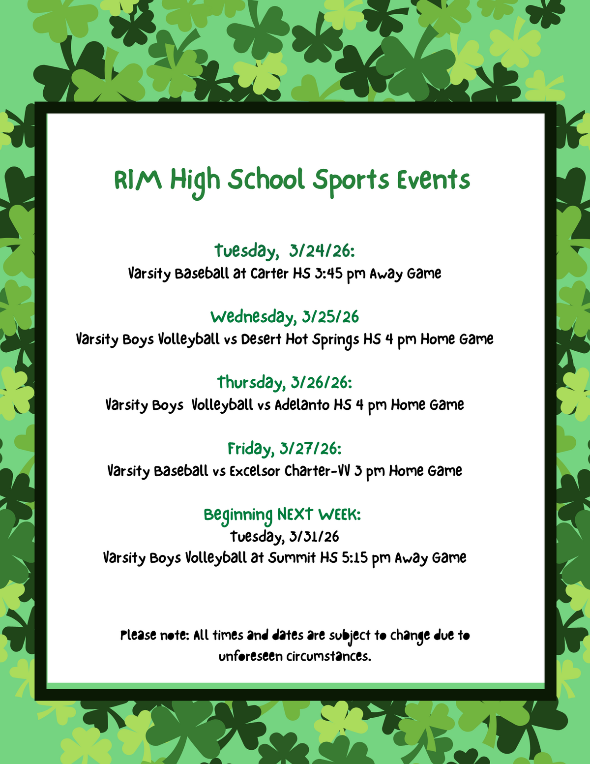 Page: RIM High School Sports Events-Tuesday,  3/24/26: