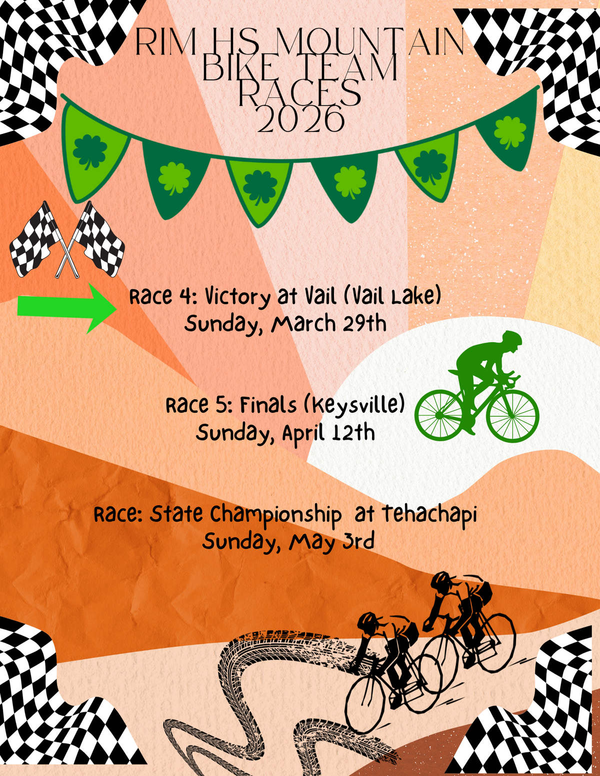Page: RIM HS MOUNTAIN BIKE TEAM RACES 2026: Race 4: Victory at Vail (Vail Lake), Sunday, March 29th, Race 5: Finals (Keysville)